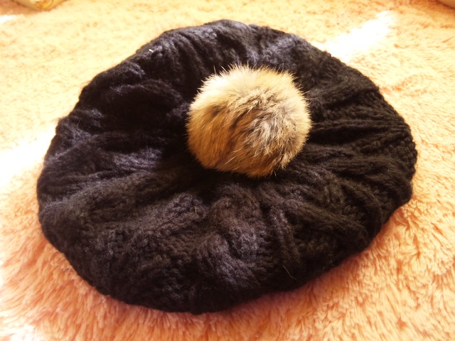 お気に入りファッションの、ニット帽。 帽子の口がゆるいので、かぶりやすいのが良い! 黒のニットに茶色のフワフワボンボンがいい感じです。