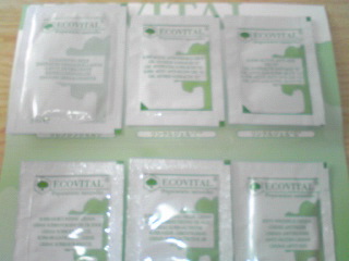 ルーマニアのメーカー ECOVITAL(エコヴィタール)のサンプルです。 内容は ・クレンジングミルク ・リンクルジェル”C” ・リンクルジェル”G” ・モイスチャライジング デイクリーム ・ナシリング ナイトクリーム ・リンクルクリーム の6種類。 リンクルジェルは朝と夜用と分かれてます。 クリームも朝と夜に分かれてます。 リンクルクリームは朝、夜両方に使えるとのこと。 使用感は、べたつく感じがぬぐえない。 が、しっとりします。 外国のメーカーからか香料がすごい。 薬草の...