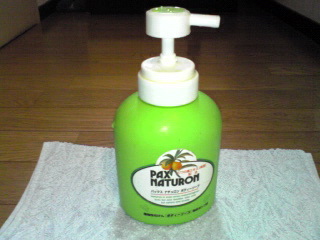 石けんメーカー太陽油脂の パックスナチュロンのボディソープ。 泡で出てくるので、ラクです。 石けんが原料なので、肌にはやさしく気に入ってます。 お風呂ではパックスナチュロンばかり使い なくなれば、詰め替え用を購入して入れてます。