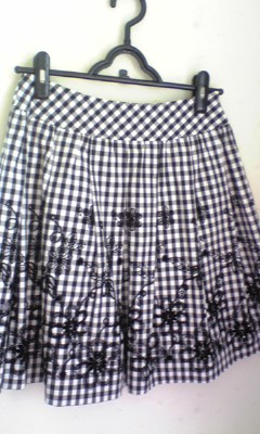 ギンガムチェックのスカート☆ 膝上位の長さなので、短くなりすぎません! 裾に刺繍が施されているので子供っぽくなりすぎず上品なイメージを与えます。 春にも使えますが、秋にも最適です。 Gジャンと合わせるて更にGOOD☆ 青や紫のストールを合わせる事も多いです。