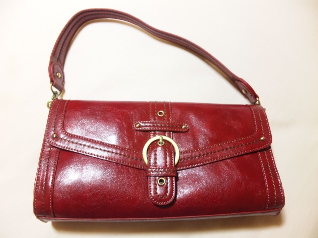 ヒモが2種類あって2wayのタイプ。 赤がモノトーンになりがちな秋にピッタリ。 ちなみに内はこげ茶です。