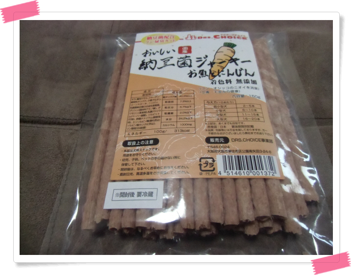 モニターで頂きましたw(゚∀゚)w ・・・ワンコのジャーキーですww 食べるとオシッコやフンのニオイが軽減されるそうです(ノ´∀`*) なので、友達のトコのワンコにプレゼントしました^^ 美味しそうに食べてくれていたので嬉しかったです(ノ´∀`*)