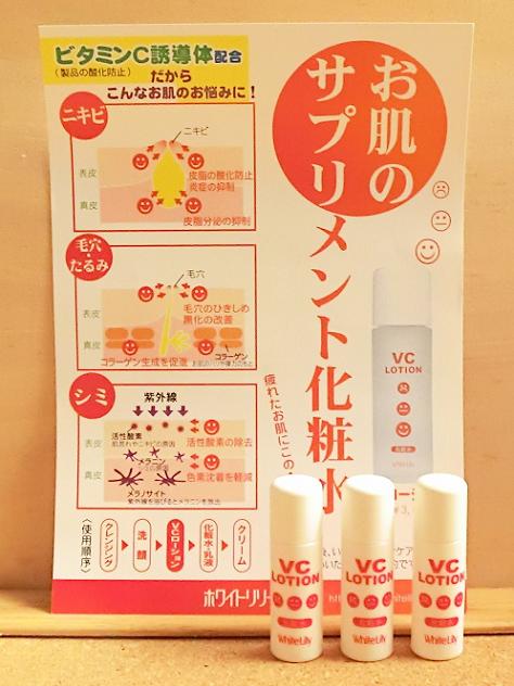 水のように透明でさらっとしたローションです。 肌につけるとすごく浸透して、浸透をした後は肌サラサラ・・・ 洗顔後すぐにホワイトリリー VCローションをつけると、 ビタミンCが肌にぐんぐん吸収されるそうです! この後の化粧水の浸透もよくなる感じがします。 肌のサプリメントというのが嬉しい! 毛穴、たるみ、シミ、ニキビにも効果があるようなので使い続けたいです!