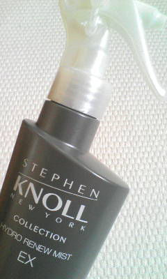 活躍中ヘアケアアイテムは、 スティーブンノル コレクション ハイドロリニューミスト EXです。 毛髪補修成分を配合していて、 タオルドライ後にスプレーしてからドライヤーで乾かしたり スタイリングの際にシュシュッと使います。 香り方は強めかな。 広がりを抑えてくれるし、さらさらな髪になります。 それと、この容器使いやすいです。 ストッパーをスライドさせるとスプレーが出るようになっていて 使い終わってまたスライドさせると完全にロックされます。