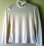 プランタンの特設会場でやっている冬のバーゲンで購入。オフホワイトの長袖で、重ね着したりまだまだ着まわせるので買いました。肩が少しだけパフスリーブ型になっています。たったの千円でした。