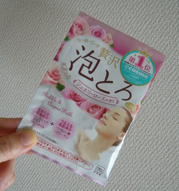 外国映画で観たようなもこもこの泡が作れます。香りはローズ。きつい香りではなく癒されます。かなりとろみのあるお湯になります。床が滑りやすくなるのでその点は要注意です。