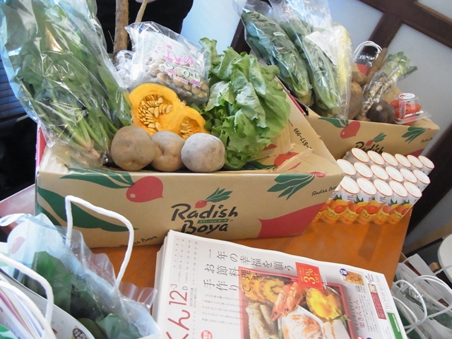 キレイナビのクリスマスパーティーに「らでぃっしゅぼーや」のブースが出展されていて、ほうれん草をいただきました♪ 新鮮なお野菜を届けてくれるので、いいですよねー。 と思うのですが、配送代やカタログ代もかかるとの事で・・・スーパーで値引きシールの商品を探しながら「今日の夕飯は何にしようかな〜?」なんて考えてるのも好きな自分には、直接スーパーで買い物をしたい!という気持ちの方が強いかも。 妊娠したり、買い物に行く事が億劫な時があったら、利用したいと思います!