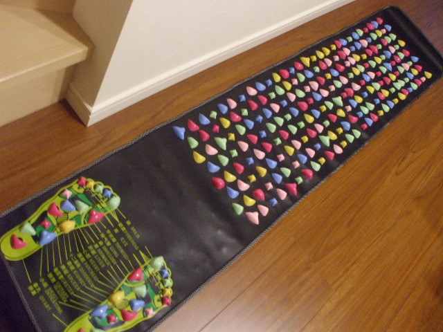 ワタシの健康法というより我が家の健康法ですが うちの家族がロフトで見たというイチオシ健康マット 話をきいて欲しいと思いネットで調べたら ロフトのより他ネットショップで見た方のが長さがあり 長めのこちらを注文しました イタ気持ちよく人に足裏推してもらうより効果あり カラフルでインテリアとしてもよく 子供から大人まで楽しめるこの健康的なマットは 我が家の健康法のひとつです 長く続けるには楽しく見た目もよくなくちゃ!!