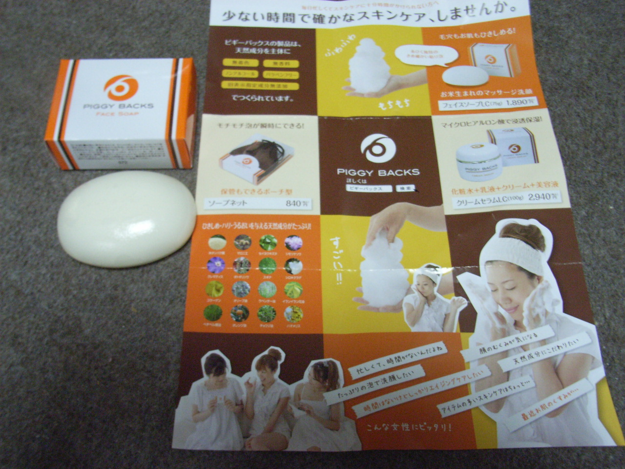 キレイナビのクリスマスパーティに参加した際にいただいた、 ピギーバックス フェイスソープLC です。 特許製法でつくられたマッサージ洗顔石鹸。サッと泡立てるだけで、弾力のある濃密でキメ細かい泡がすぐにできあがります。 とのことで、泡立てたところ、実に濃密できめ細かい泡ができあがりました。洗顔後の肌のつっぱりをほとんど感じなくなったので、使い続けたいです。