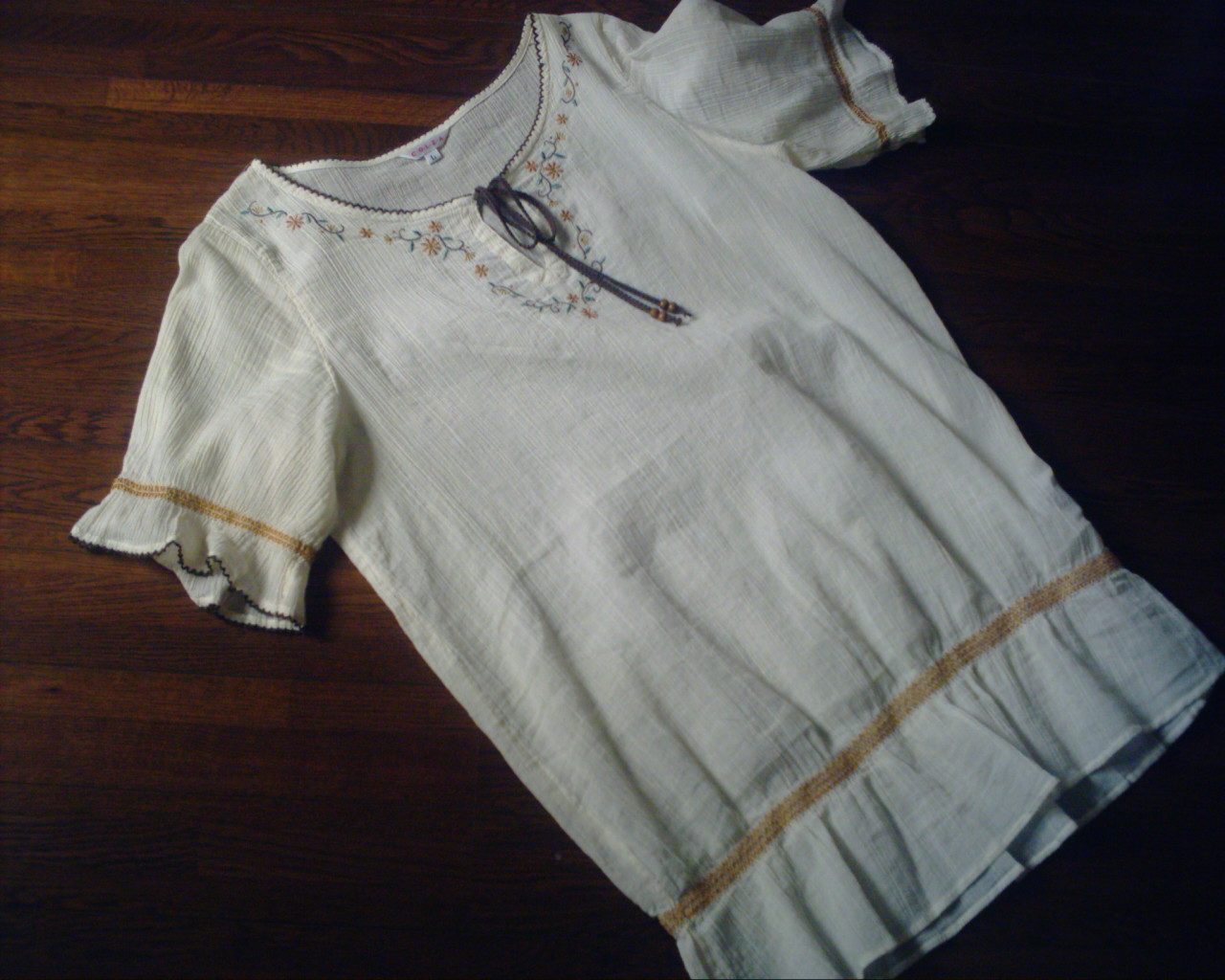 可愛い今年流のチュニックで、やさしいイメージの デザインで暑い今に着やすい品です。 何気なく、見てたショップでバーゲンになってて 買いました。思った以上に可愛くて気に入ってます。