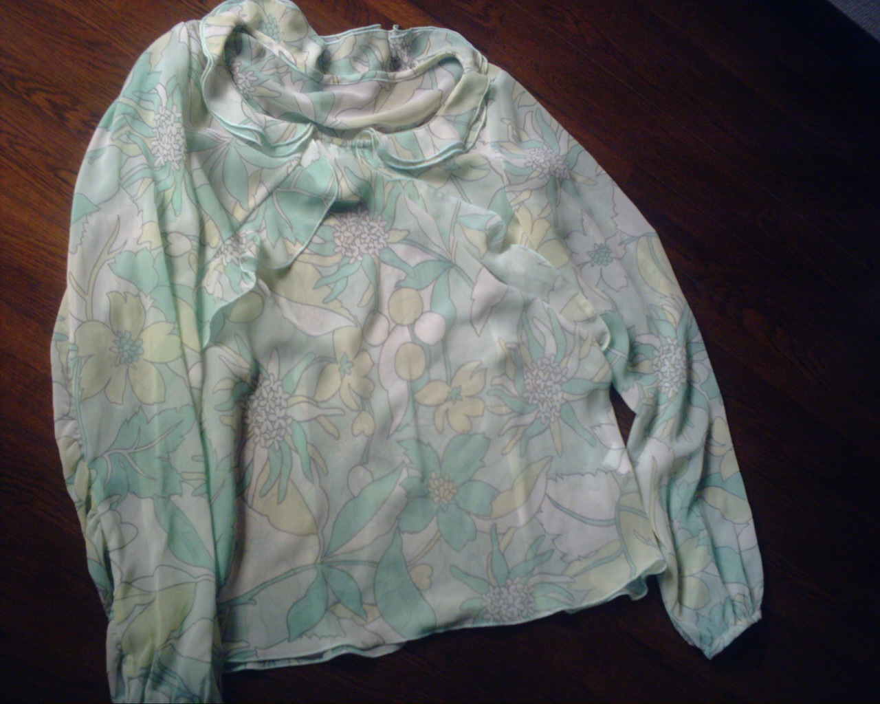 今まで持っていないカラーのタイプですが 涼しそうなので購入。 グリーンの色とデザインに、着るとイメージが 違う人のようでしたが新しい感じでした。 バーゲンで1500円と安くなってて ジーパンとあわせて着てます。
