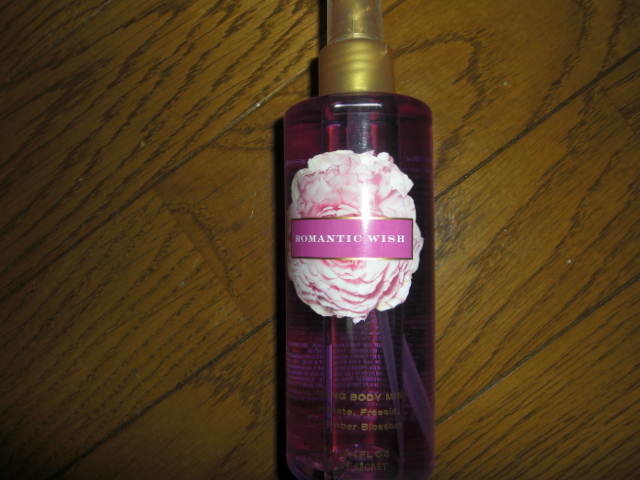 ヴィクトリアシークレット ボディミスト ロマンティックウィッシュ 友達から頂きました。ほんといい香りで、おふろ上がりに全身にしゅっしゅっ。。癒されます。ベットやお洋服やかばんなどにもしゅっっ。。マルチにつかえるボディケアアイテム持っていて損はなしなアイテムだと思います。香りのバリエーションもたくさんあるので、他のも試してみたいです。