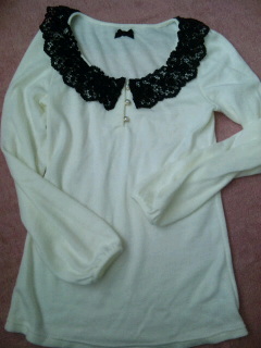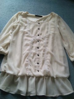 冬のバーゲン戦利品6 7分丈のシフォンブラウスなので、これからちょっと温かくなってきた時期にも使えます。 真っ白ではないので、使いやすい色。 女の子らしくコーディネートできます。 真ん中の飾りボタンや、レースの刺繍もオシャレ度をアップしてくれています。