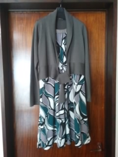 久しぶりのバーゲン戦利品は、これまた久しぶりのワンピース。 半額でゲットできました。 このボレロ…くっついてます。 今時は珍しくもないようですが、スッキリしてて着やすいです。 小柄な私が着ると、ちょい膝が隠れるぐらいなところも気に入りました。 色合いも大好きなカーキだし、上品に見えたりして(笑)