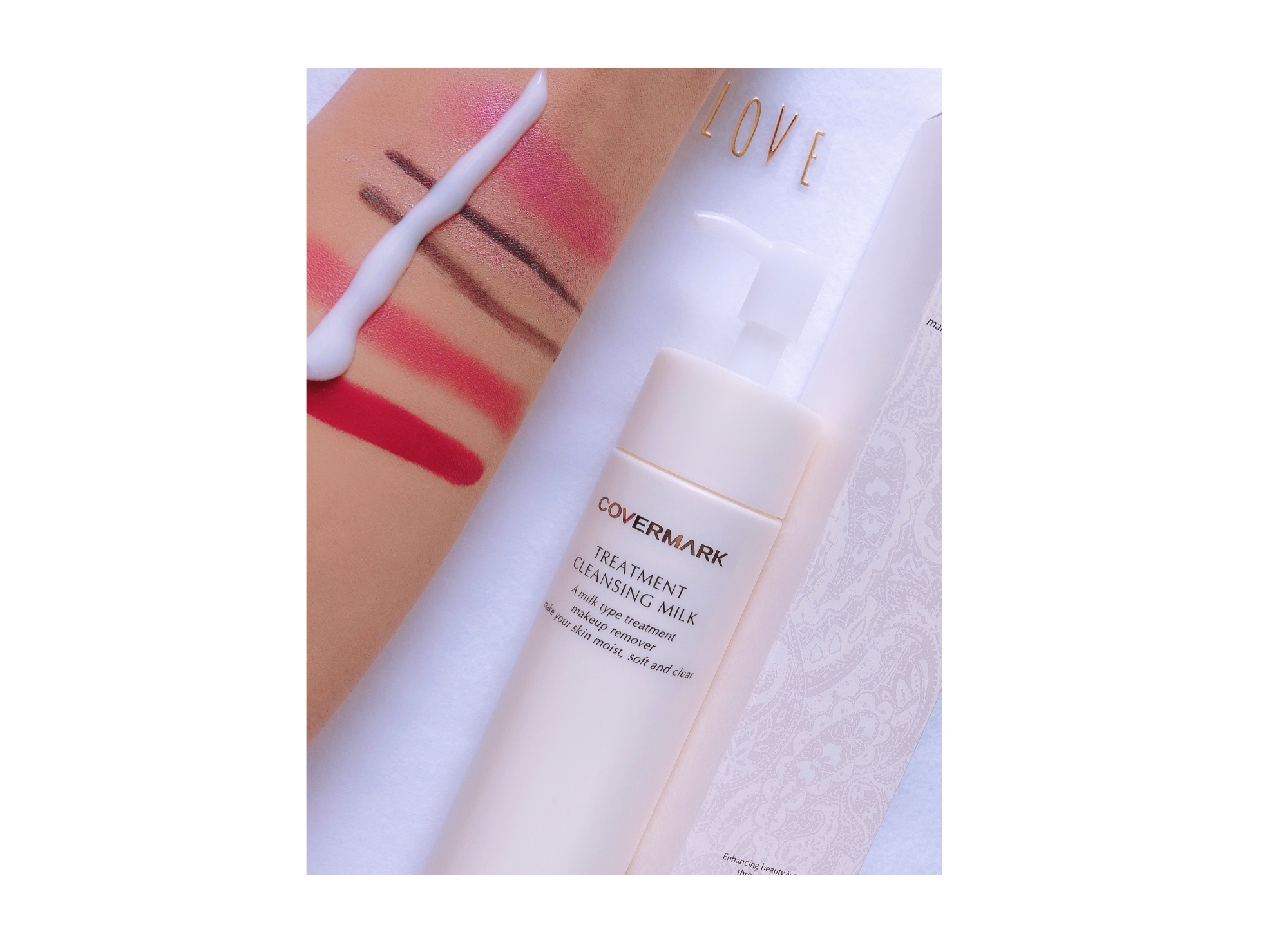 カバーマーク トリートメント クレンジング ミルク 200g 3000円(税抜) 濡れた手でもオッケー🍀 3プッシュを顔になじませて洗います! カバー力があるファンデでメイクしてたのにスルッと落ちてしっとり肌に! 美容液成分が89パーセント配合されていて肌に負担かけずに化粧を落とせるのがポイント! まつ毛エクステもオッケー🍀 9種類のエッセンシャルオイル配合で柑橘系の香りです。 乳液をつけるような感覚なので焦らずにゆっくり丁寧に化粧を落とせます。 クレンジング...