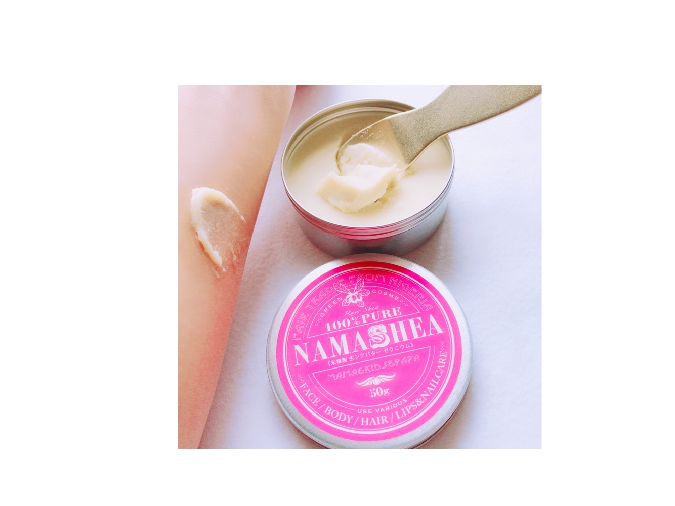 ナマシア 生シアバター (ゼラニウムの香り) 化学薬品不使用! 50g 2480円(税込) 成分↓ シア脂、ニオイテンジクアオイ油 肌にのせてマッサージするように伸ばしてしばらくすると肌がなめらかに! 乾燥してガサガサだった肌が次の日の朝にはツルッとした触りごごちに変わっていてビックリしました! 乾燥肌で年中乾燥しているのでこの生シアバターはありがたい! 赤ちゃんから大人まで使えるのも嬉しい!ゼラニウムが入っているので生理不順の時に良さそうです。妊娠してる方はゼラニウムが入ってない生シ...