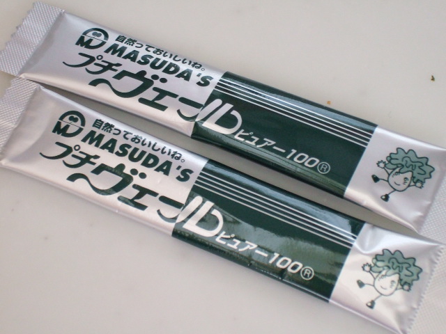 マスダ((株)増田採種場)が開発した新野菜「プチヴェール」の青汁です。ケールと芽キャベツを交配させて両方の良いとこ取りをした栄養価が高く、甘味がある青汁。水でシェイクして早速飲んでみました!ほんのり甘〜いかな?苦くはないです。私は青汁好きなのでもっと苦くてもO.Kです。栄養価が高いので健康に良さそう。