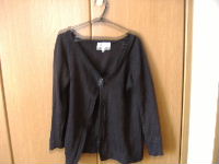黒カーデ「秋冬アイテム」 形が面白かったので購入。 ボタンのところが斜めになっていて 全部ボタンを留めることはできません・・・ 黒の透けるかんじのカーデガンです。