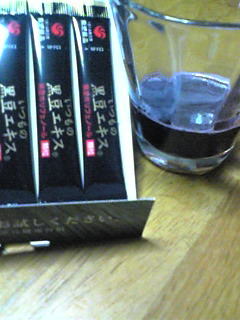 コップに開けると紫の色をした黒豆の粉末になっており、よく水に溶けやすかった。飲んでみると、酸味があり、すっぱいのが好きな方なら飲みやすいのでは・・・。 黒豆濃縮エキスを5日間体験しました。パソコンを使用していて目の疲れの負担が和らいだような〜。辛い花粉症の症状はまだ効果がないようです。 パンフレットのクチコミでも1ヶ月や○年とか書いてあったから長く愛用すればわかるのでしょうけど。。。