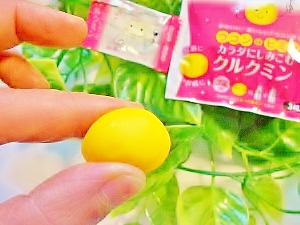 食べてみると、ウコンの味はしないんですよ! マンゴー味なのでほんとお菓子のグミを食べている感じ♪ これでクルクミンが摂れるのはうれしいですネ! 食べやすいところもいいです!