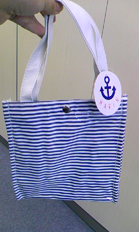 この夏大活躍したのは、 これまた、300円ショップで購入した イカリ柄のマリンスタイルのミニバックです。 小さいようでいて、マチがあるので、 お財布・携帯・通帳・諸々、、、 たっぷり入ります。 銀行に行くときや病院に行くときなど、 チョットの外出には大活躍しました。