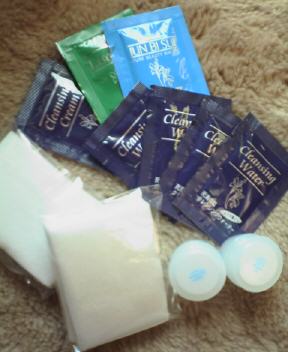 画像はすでに2点ほど使ってしまった状態です、ごめんなさい。 メイク落としから美容液・保湿までそろったスキンケアセットです。 正直、いまいち・・・; 洗顔の泡が荒くて乱暴だし、一緒に付いてきたコットンはケバだつし。 洗顔は合う合わないがあるかもですが、コットンは手持ちの物を使われた方がいいと思います(^^;) 美容液もあまり効き目があったようには思いません。 むしろ合わなくて、肌がちょっとざらついてしまったかな。 メイク落としから保湿までが6ステップもあって面倒くさい・・・;