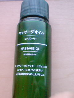無印のアロマオイルです。ローズマリーの良い香りに包まれながら足などをマッサージする快感! 気持ちいいしいい香りです。