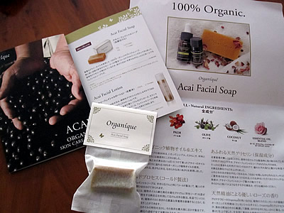 キレイナビ×OK WAVE ソーシャル女子会で 頂いたお土産を紹介します★ 20gのソープを試しました。アマゾンで育ったスーパー果実、 アサイーのオイルとエキスに、オーガニック植物オイルを配合。 コールド製法で手間ひまかけてつくられた石鹸です。 ほのかにローズ精油が香ります。とっても硬い質感のソープなので、 コスパがよさそう。泡立てると色が若干黄色がかっています。 さっぱりしすぎない洗い心地が気持ちよかったです。
