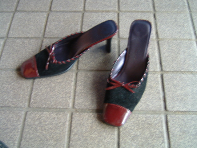 勝負アイテム3 こちらは中古で700円でした。 デザインがとっても気に入って買っちゃいました。 ボルドーの落ち着いたトゥとリボンがアクセント。 黒の部分はスウェードのような生地です。 勝負時の多い秋に似合う靴です☆ ヒールも高くもなく低くもなく、歩きやすくて気に入ってます。 大人っぽいエレガントな装いの時に履きますねん。