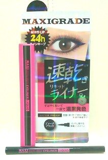 モニターさせて頂きました。こちらのリキッドライナー、ブレずに描ける極細フエルトペンと書いてあり、小学生のかきかたの授業で使っていたのよりは細いだろう…ぐらいの想像をしていたのですが全然違い、コシとハリがあり、穂先がきれいに揃っているので微妙な線まできちんと描けます。 先が細いほど力の入れ具合が難しいかもしれませんが、一発でビュっと綺麗に描けたら目元美人になれることは間違いなし。練習しがいがありますね。 また、描いた後の速乾きは驚きです。その上、ぜんぜんにじみません。 けれど、お湯では簡単に落ちる...
