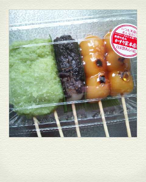 和菓子の方がヘルシー!ということで、 この秋は、よくお団子を食べています(^_^;)。 このお団子は、ひと串に小さいお団子が3つ。 そして、あんは、あんこ&ごま&ぬたの3種類。 ダイエット中でも欲張っていろいろ食べたい私の欲望を 満たしてくれちゃう素敵な商品なのです! だから、いつも誘惑に負けてしまって買っちゃってます><。 秋にいただくお団子って、どうして格別に美味しく感じちゃうのでしょうかね(*^_^*)。