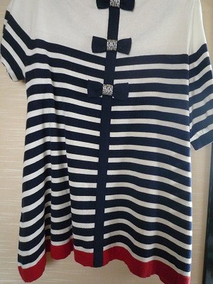 おリボン+ボーダー+ホワイト地と、三拍子そろったニットで、 これも欲しいな〜と狙っていたものでした。 戦利品ではあるのですが、生地の感じがいまいち好きではなく、 衿ぐりの空き具合とか、想像していたものとは違っていたので★4つです。 デザインは完璧好き系なのに。 ポチる時に、もっと素材の質感とかを拡大して見なくちゃな! と改めて思ったアイテムとなりました(^_^;)