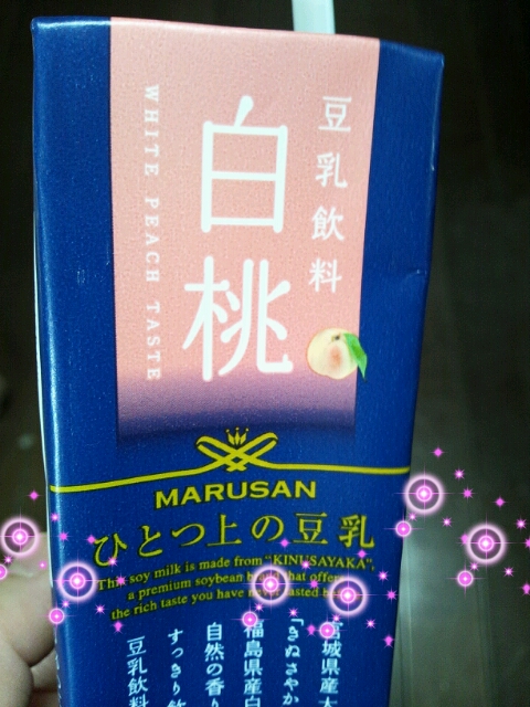 マルサンアイの「ひとつ上の豆乳」シリーズは、 普通にスーパーに並んでいる同じサイズの豆乳より ほんのちょっとお高めの豆乳です。 商品説明にある「にごりのない豆乳」という表現に納得のすっきり加減。 飲んだ時、豆乳独特の味のひろがりが抑えられているようで、 とても飲み口がいいです。 こちらの白桃は、上品な桃の味わいでした。