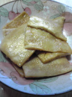 今、ハマってるのが高野豆腐。 栄養価も高く、価格も安い。 ネットでレシピを調べてます。 見つけたのが高野豆腐をお肉に見立てて生姜焼き。 高野豆腐を水で戻して薄く切って 小麦粉をまぶして、油を入れたフライパンで炒めて 別で用意していたたれ(醤油・みりん・酒・しょうが)を 絡めてできあがり。 高野豆腐がもちもちした食感なので 満腹感はあります。 しょうがが食欲をそそるけど、カロリー低いので ダイエットにいいかな?