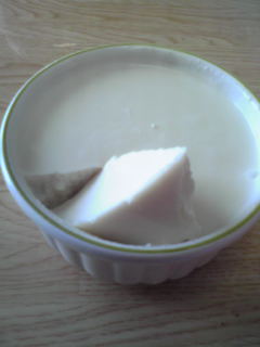 先日作った、豆腐クリームが余ったので ゼラチンを入れて、ムースにしてみました。 豆腐クリームは豆腐とスキムミルクと蜂蜜を混ぜて作ったもの。 この豆腐クリームに無糖ヨーグルトとゼラチンを入れて 冷蔵庫で冷やしてできあがり。 ゼラチン5g(1袋)に対して 豆腐クリームが100g、ヨーグルトが70gで作ってみました。 (残った豆腐クリームにヨーグルトを加えただけ。容器の関係で70gになった) かなり硬くなりましがた、あっさりと食べれました。 個人的にはもう少しやわらかいほうがよかったかも・・・ カ...