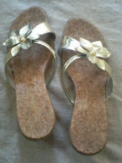 今年3足目のミュールです。 ゴールドは合わせやすいしバーゲン品で安かったのでつい買ってしまいました♪ 大きめのお花のモチーフが可愛いです♪