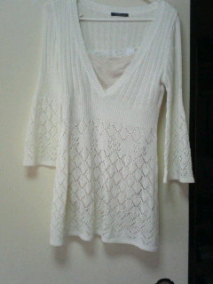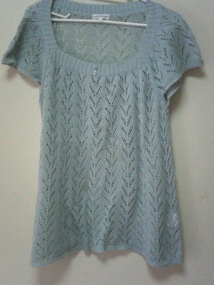 淡いブルーのニットのベスト??です 白いシャツの上に重ね着して着てます これは去年の春にマイカル桑名でゲットしました。 薄手なのでもう少し暖かくなってから着たいです