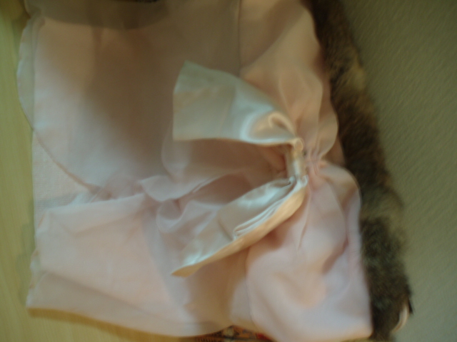これも近所の問屋街で見つけてきました。 値段はよく思い出せませんが1000円以下の値段で購入。 ピンクのリボンのキャミソールに、 ふわふわ毛が、すっごく可愛いんですよ! 秋らしいキャミソールでかなり気に入ってます。 唯一の欠点は丈が少〜〜し短いかな?? という点のみ。 さっそく友達の結婚式二次会で大活躍しました! もちろんショールは別購入で。 秋でもピンクはやっぱり可愛いので手放せません!