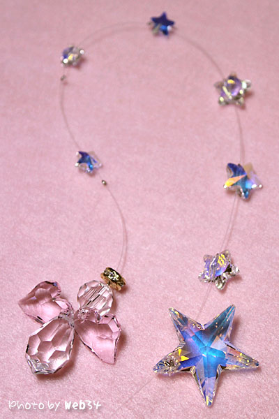 癒しグッズで、とてもお気に入りのサンキャッチャーを飾っているので紹介させていただきます☆ もう見てるだけで気持ちが優しくなって来ちゃうんです♪ 【写真はクリックして大きな写真をぜひ!^^】 パーツは全てスワロフスキー。 吊すと一番上に来るのはとても大きな星で、直径約8ミリほど。 星のパーツはどれもABカラー(オーロラ)なので、光の具合でブルーに見えたりゴールドに見えたりとてもキレイ☆ 写真に入っていませんが、ちゃんと引っ掛けられるようになっているので、何も付けずにこのまま吊すことが出来ます。 下...
