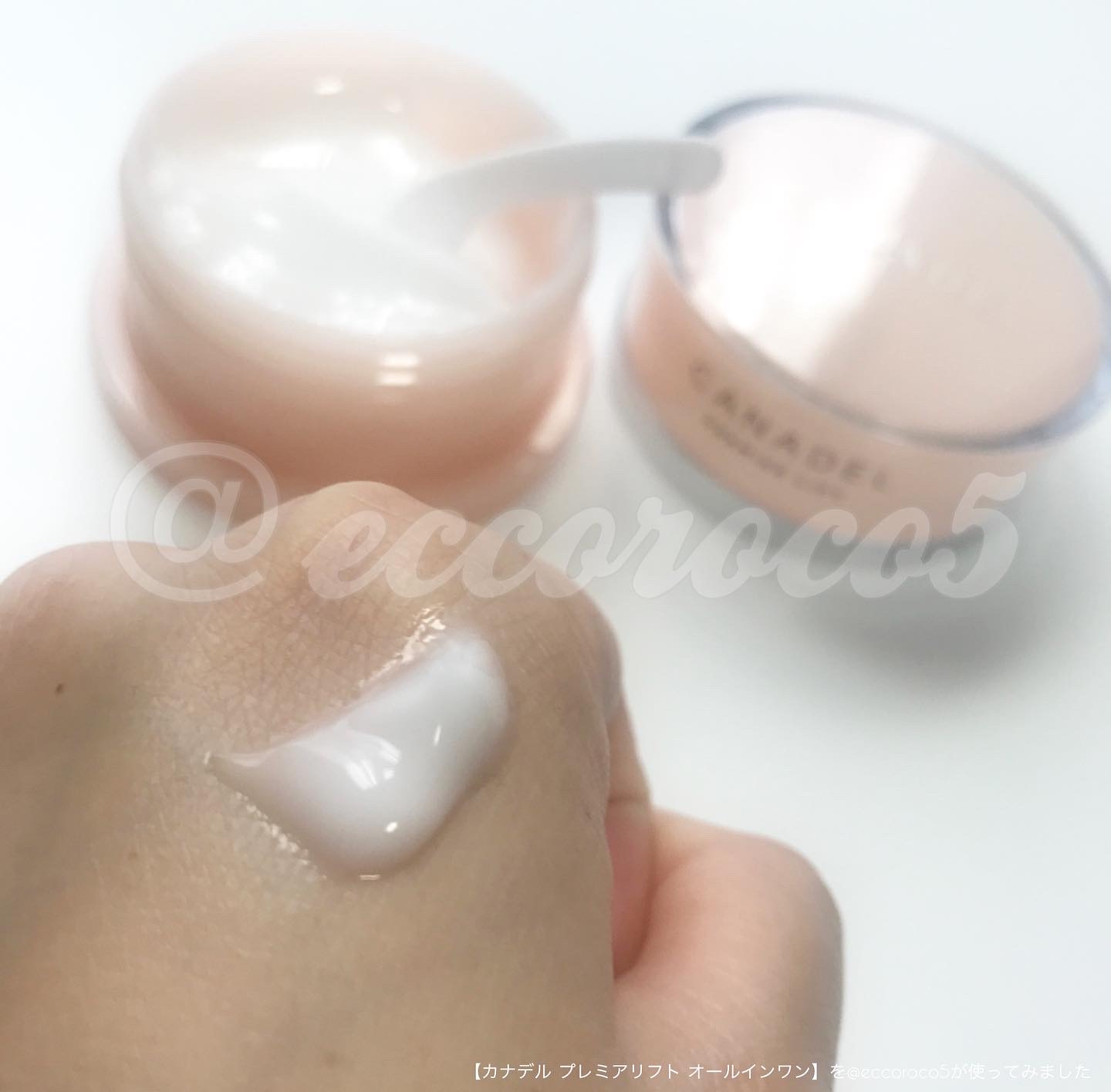 \しっとり&ハリ感がお気に入りのオールインワンクリーム/ 《ハリ・シワが気になる人のオールインワン(ハリ・乾燥小ジワ・弾力・保湿・角質ケア)》 薄くやさしいピンク色の容器の蓋をくるくる回して開けると内蓋があり、その上は付属のスパチュラ置き場を兼ねています。 スパチュラの置く場所があるの、めっちゃありがたい! 内蓋には取っ手がついていて、引き上げることができるようになっているのも◎ すこしゆるめでさっぱりもしているクリームです。 若干ジェルっぽさがある感じ。 だから伸びが良くて、なめらか...