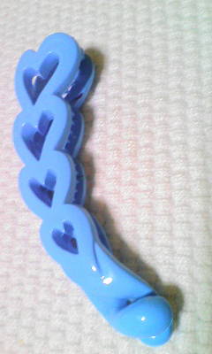 ハートのバナナクリップです。 最近色んなデザインのバナナクリップがあり、 ササッとつけられるので、お気に入りです。 わたしは、よくハーフアップにしてこれで留めてます。 ちょっと髪が邪魔かなーって時にもこれで留めておいたり、 髪にあとをつけたくない場合はバナナクリップが大活躍♪
