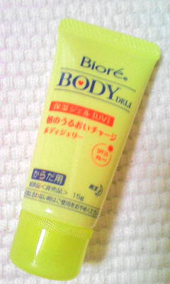 この夏大活躍したアイテムは、ビオレのボディジェリーです。 黄色いクリームのようなジェルのような感じで ムラなくすーっとなじみます。 付け心地は軽めでベタつかないのが良い。 それにSPF25 PA+++の紫外線対策も○。 アセロラ&ベリ−の香りつきです