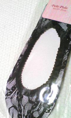 バーゲンの戦利品8 黒レースのフットカバーです。 わたしはフラットシューズを履くときに使っていますが、 サンダルみたいにつま先が出ない靴以外なら パンプスやスニーカー‥と使えると思います。 靴擦れ予防にも○。 値下げして100円くらいでした。