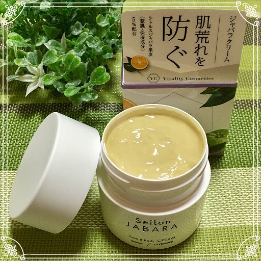 顔にも体にも使え便利で 独特な色はジャバラの天然成分でエッシェンシャルオイルで香りづけされているラベンダーの香りがふわっと広がりリラックス効果を感じられます。 濃厚な感じのクリームですが肌に伸ばしやすい柔らかさで 肌になじませるとベタつきも気にならずサラッとなる嬉しい使用感で 肌が保湿され保護されているような感じがするので お風呂上がりや寝る前のケアはもちろん 肌に優しいので気になる部分に気になった時に使用したいです。