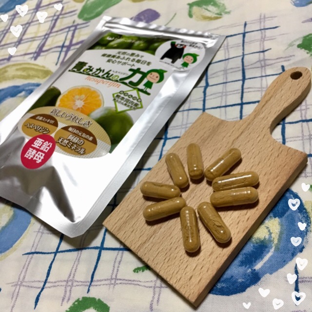 貧血・ミネラル不足&花粉・鼻炎が気になる方におススメで 1カプセルを飲むだけで良いので続けやすいです☆ 食生活の乱れから 鉄分やミネラル不足も感じているので 補えるのが助かります♪ 未成熟の温州みかんの青みかんに多く含まれるポリフェノールの一種の 花粉やハウスダストによるアレルギーを抑制する働きがあることで知られるヘスペリジンは 毛細血管の強化・冷えや血圧の改善・ビタミンCの吸収促進など さまざまな作用が期待されています。 熊本河内産の青みかんの果皮を使用しているのでくまモンシールがあります。