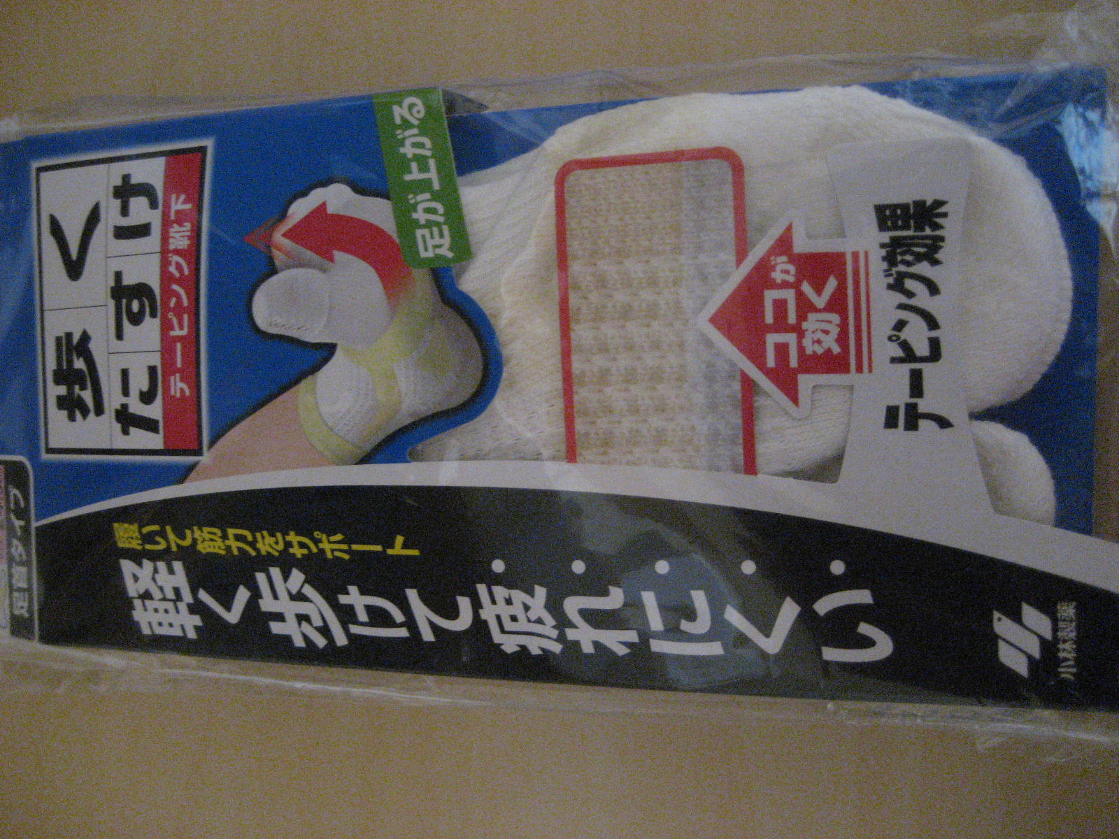 健康系の福袋に入っていた戦利品。 つま先が上がって歩きやすくなるそう。二本指でテーピングのようなものが施されています。 これ一側でも1000円以上なので、とてもお得な福袋でした。 ウォーキングを始めたいと思っていたので、さっそくこれを履いて頑張りたいと思います!!