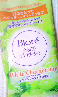 梅雨対策GOODS、3 ビオレ さらさらパウダーシートです。 夏や梅雨の時期は ムレて汗をかいた時に備えてバックの中に入れて持ち歩きます。 ふき取った後汗の気持ち悪さがなくなるしお肌さらさら。 白残りしないです。 ホワイトシャルドネの香りが良い♪ これは携帯用なので10枚入り。大きいサイズも出て欲しいです。。。