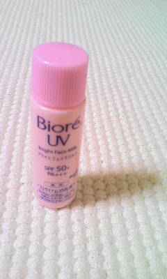 ビオレのブライトフェイスミルク(サンプル)です。 顔用の日焼け止め乳液。 ピンク色で、塗った後はさらさら。でもちょっと浮くかなー?? くすみをカバーしたり、お肌のトーンアップが感じられます。 SPF50+ PA+++みたいなので 長時間の外出や、海に行くときなども使えそう!! 美白の為に、まず日焼け止めでしっかり守らないと‥。