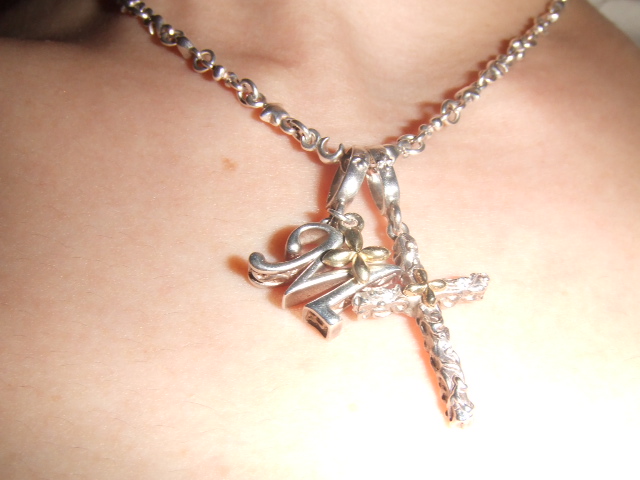 イニシャルとクロスのチャームネックレス