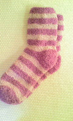 バーゲンの戦利品:もこもこくつしたです。 もともとワンコインくらいで買えて、お買い得なのですが、 さらにそこからお安くなって買えましたぁあ〜!280円だったかな? しかも2足組!! 履くと暖かくて、足元の冷えから守ってくれてますッ☆